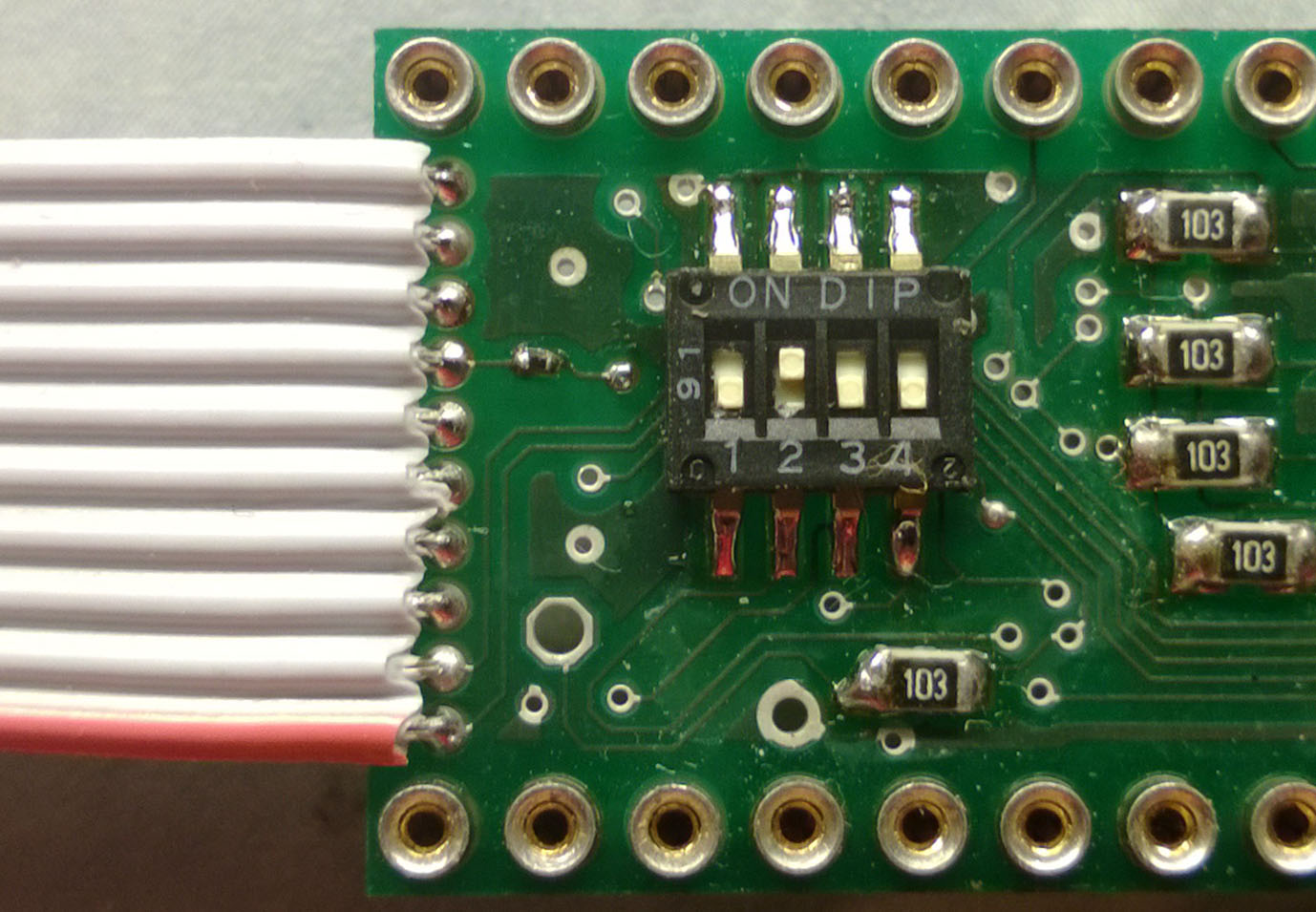 Als nächstes wir der DIP Schalter aufgelötet. Die Folie sollte man erst nach der Reinigung der Platine abziehen.