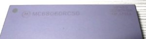 Welche CPU hier im Innern arbeitet läßt sich hier natürlich nicht erraten. Allen gemeinsam ist, das ihre Kennzeichnungen nicht zusammen passen. Ich gehe mal davon aus, das kein Fälscher auf eine vollwertige MC-CPU etwas falsches aufdruckt. Apropos gedruckt: ab 1998 hat Motorola alles, bis auf die drei weißen Zeilen in der rechten oberen Ecke, graviert.
